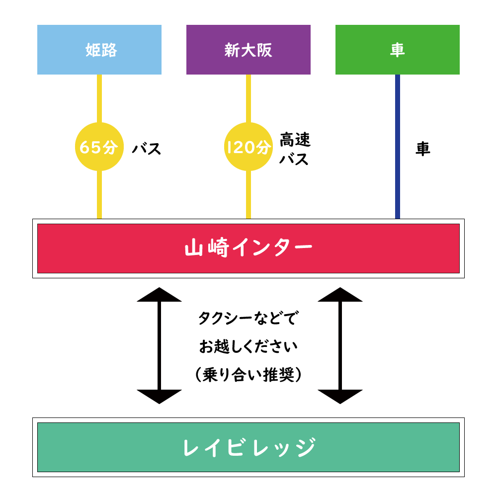 山崎インターからはタクシーなどを使用してご来場ください、混雑緩和のため乗り合いを推奨しています、ご協力お願いいたします